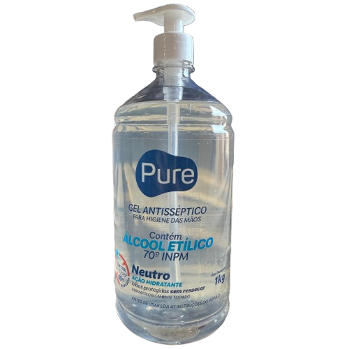 Protecao e higiene para toda a familia. O alcool Gel Pure Alyne com tamanho de 1kg foi desenvolvido para a higiene das maos com o objetivo de eliminar bacterias e virus, por meio de sua composicao formada de alcool Etilico Neutro 70% e Glicerina.