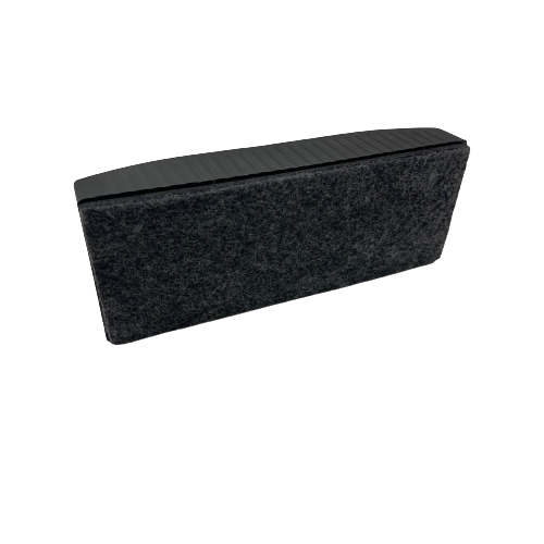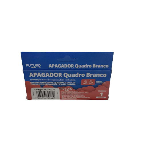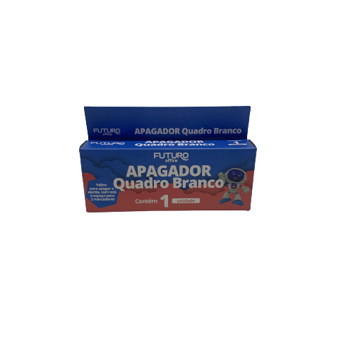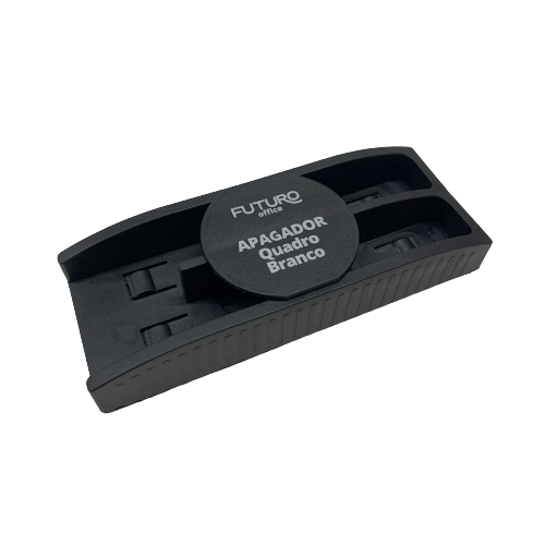 Feltro para apagar a escrita, com imã e espaço para 2 marcadores.