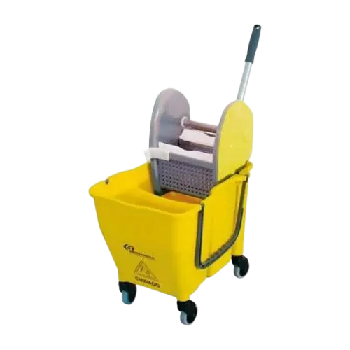 O Balde Duplo Doblô da Bralímpia tem um divisor de águas, onde ele consegue separar a água suja da água limpa. Além disso também tem o espremedor para auxiliar na remoção das impurezas do refil de mop.