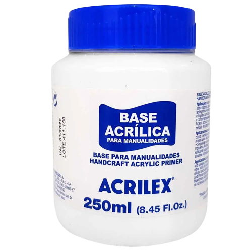 Base Acrílica para Artesanato 250ml Acrilex Fundo fosco branco Consistência espessa Pronta para uso Solúvel em água Secagem de 20 a 30 minutos Aplicações: