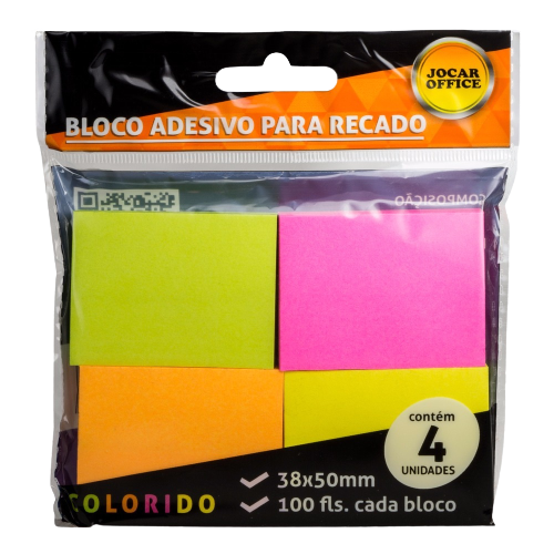 Os blocos adesivos fluorescentes da Jocar Office foi feito para você fazer pequenas anotações. Seja em cadernos, no canto do computador ou em um painel de recados, com suas cores fluorescentes nunca esqueça mais o que há de importante para fazer.