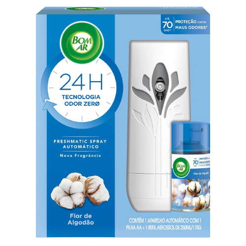 Bom Ar Air Wick Pure Aromatizador Spray Automático Freshmatic Aparelho + Refil Toque de Algodão 250ml