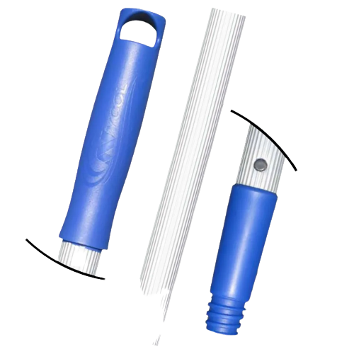Cabo de aluminio natural, com 144 cm, com rosca, tipo ponteira e manopla na cor azul