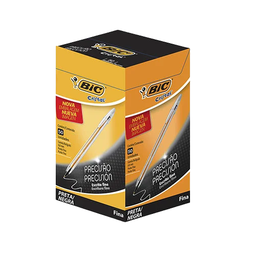 Caneta esferográfica clássica e favorita em milhares de lares, escritórios e escolas no mundo. Possui corpo hexagonal que assegura o conforto na escrita e transparente para visualização da tinta. Tinta de alta qualidade, que seca rapidamente evitando borrões na escrita. Maior Durabilidade: Escreve até 2 Km. Escrita macia. Fabricada com a quantidade certa de matéria-prima para uso prolongado e seguro. Não contém PVC. Possui tampa da mesma cor da tinta e também é ventilada em conformidade com padrão ISO. Na ponta conta com uma esfera de Tungstênio, perfeita e muito resistente, quase mais duras que o diamante. 100% das esferográficas são feitas por um processo altamente controlado.