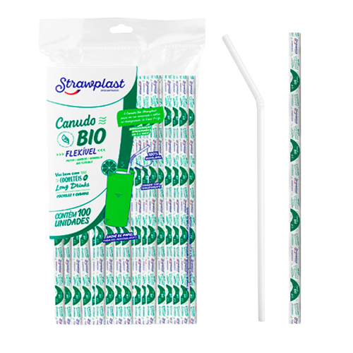 CANUDO STRAWPLAST BIODEGRADÁVEL SACHÊ FLEXÍVEL 6MM Pacote com 100 unidades