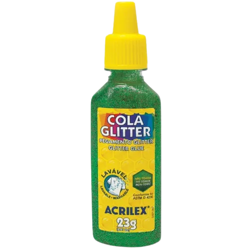 Cola Glitter Acrilex Foi desenvolvida para trabalhos escolares e artesanais.