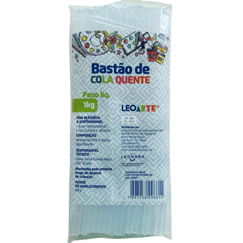 A Cola Quente Bastão Leoarte é para o uso na Pistola. É transparente e é indicada para colagens em trabalhos manuais de diversos tipos como madeira, papelão, papel, plástico etc.