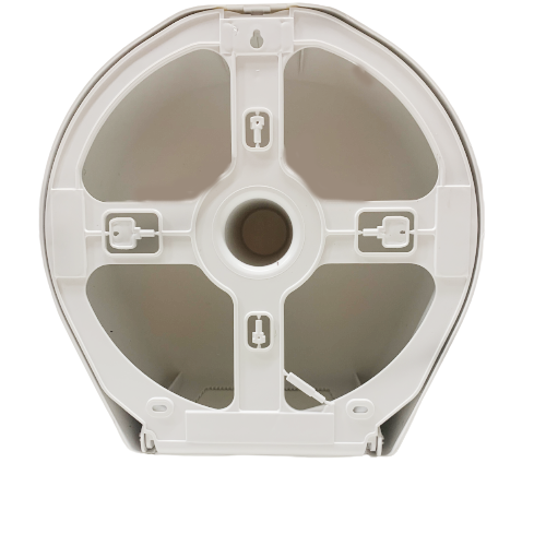 Suporte para papel higiênico da linha Mazzo, feito em plástico de baixa densidade e alta resistência, com sistema de travas laterais acionadas por pressão. Ideal para banheiros de alto fluxo de pessoas como em shoppings, escritórios e salas comerciais, indústrias, supermercados, clínicas, hospitais, bares e restaurantes.