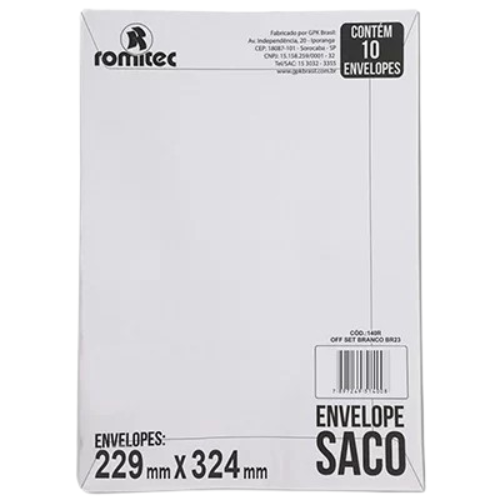 ENVELOPE 162X229 BRANCO C/10 ROMITEC quantidade