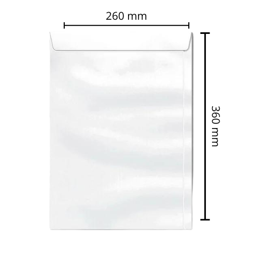 Envelope Saco BRANCO 260×360 com 100 Unidades Envelope de papel BRANCO, ideal para transportar e armazenar documentos em geral. Produzidos com papéis de alta qualidade, os envelopes podem ser utilizados em diversos segmentos.