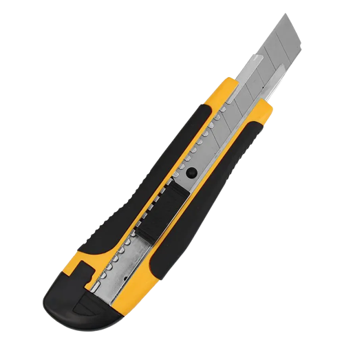Corpo em resinas termoplásticas e metal, lâmina em aço. Atóxico.