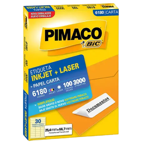Etiqueta Carta 100 Folhas 6180 25,4mmx66,7mm – PIMACO