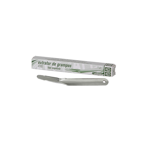 Os extratores de grampos tipo espátula são fabricados em aço inoxidável.