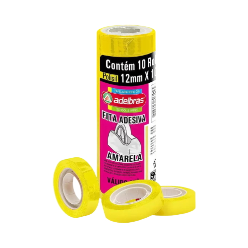 Fita Polisil Amarelo, 12 mm x 10 m, Pote Contém 10 Unidades, Adelbras