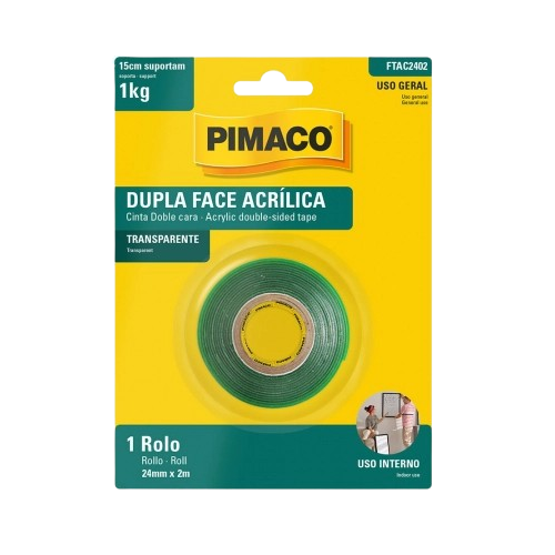 Fita dupla face acrílica 24mmX2m – Pimaco