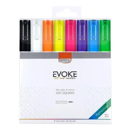 Giz Líquido Brw 3mm 8 UN 4g Cores Sortidas Neon Blister -BRW