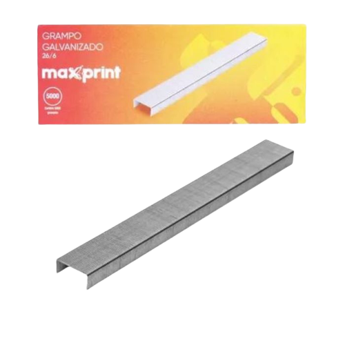 Os grampos galvanizados 26/6 maxprint são produzidos em arame galvanizado de alta resistência e são muito macios e resistentes.