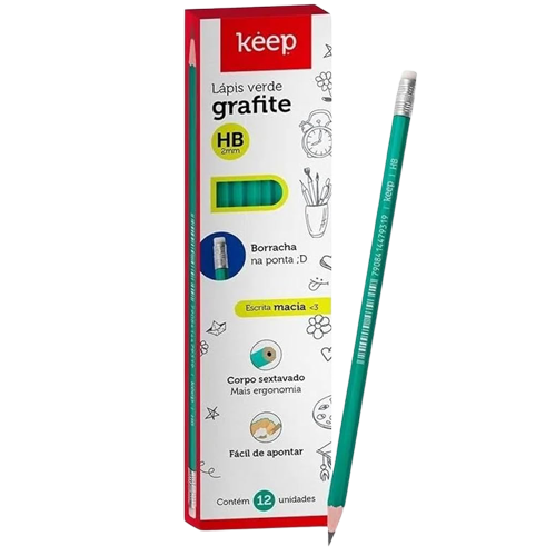 LAPIS HB PRETO C/BORRACHA C/12UN KEEP quantidade