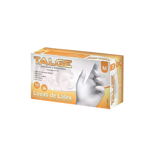 Luvas em látex com pó, superfícies lisas, não estéreis e ambidestras. Uso único.