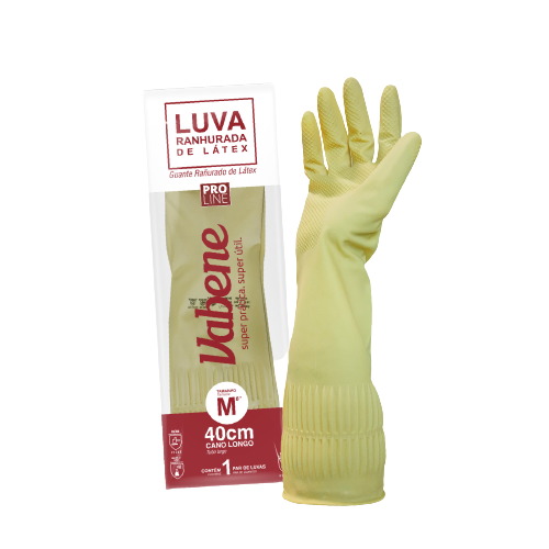 Confeccionada em látex de borracha natural, a Luva de Látex Ranhurada Flex Vabene oferece segurança e proteção mecânica e química para mãos e, seu punho longo, a torna ideal para atividades de imersão até o antebraço.
