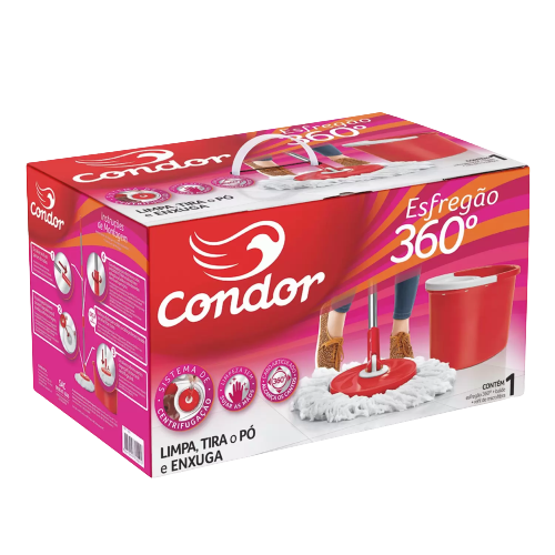 O Condor Mop possui centrifugação 360, eliminando totalmente a água.