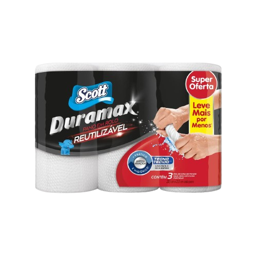 O pano Scott Duramax Rolo resolve essas e outras emergências de maneira rápida, prática e higiênica! São mais absorventes e resistentes que papel toalha, podendo ser lavados e reutilizados ou simplesmente descartados, dependendo da sujeira. • 174 panos com 20,1 cm x 21,5 cm cada • Use, lave e reuse. Seca rápido. • Não solta fiapos • Mais absorventes e resistentes que papel toalha • Prático e Higiênico: um pano limpo sempre à mão.