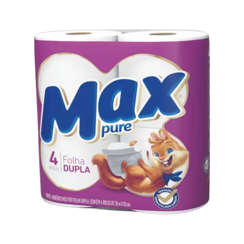 Papel Higiênico Folha Dupla Max Pure com 4 rolos de 30 metros
