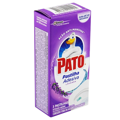 Pato Pastilha Adesiva é uma solução de limpeza simples. A pastilha se fixa à borda do vaso sanitário e perfuma a cada descarga.