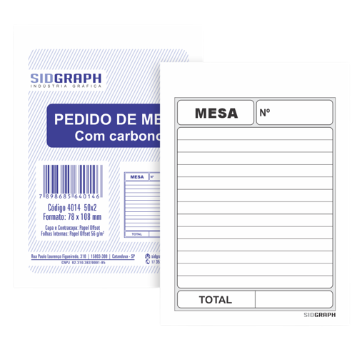 PEDIDO DE MESA 50X2 VIAS SIDGRAPH quantidade