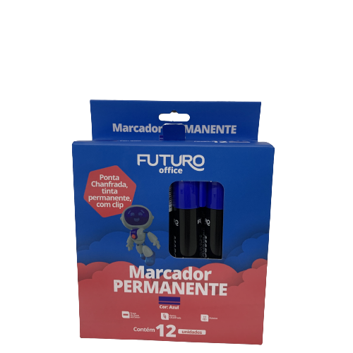 Ponta chanfrada, tinta permanente, com clip.