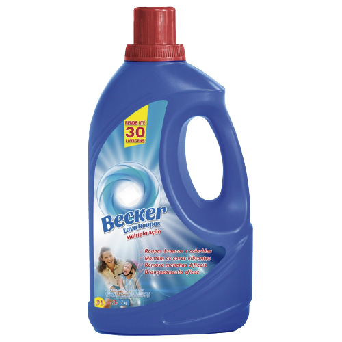 O Becker Lava Roupas Múltipla Ação oferece limpeza impecável, preservando as cores, removendo manchas e promovendo um branqueamento eficaz do tecido.