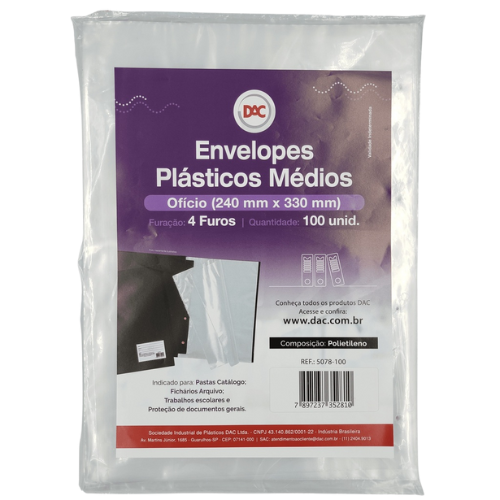 SACO PASTA A4 S/FURO 12MM C/100 DAC quantidade