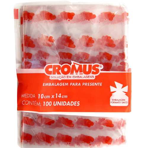 SACO TRANSP. LOVE VERMELHO 10X14 C/50 CROMUS